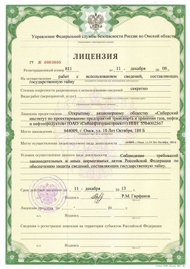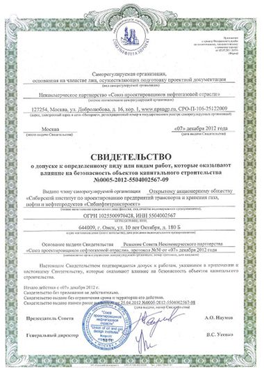 Для осуществления проектно-изыскательских работ общество имеет все необходимые лицензии и свидетельства о допуске к работам по подготовке и организации подготовки проектной документации, действующие на территории Российской Федерации, выданные саморегулируемыми организациями: Некоммерческое партнерство «Объединение организаций выполняющих проектные работы в газовой и нефтяной отрасли «Инженер-Проектировщик», учредителем которого является ПАО «Газпром», а также свидетельство о допуске к работам по выполнению инженерных изысканий, выданное саморегулируемой организацией Некоммерческое партнерство содействия развитию инженерно-изыскательской отрасли «Ассоциация Инженерные изыскания в строительстве».